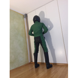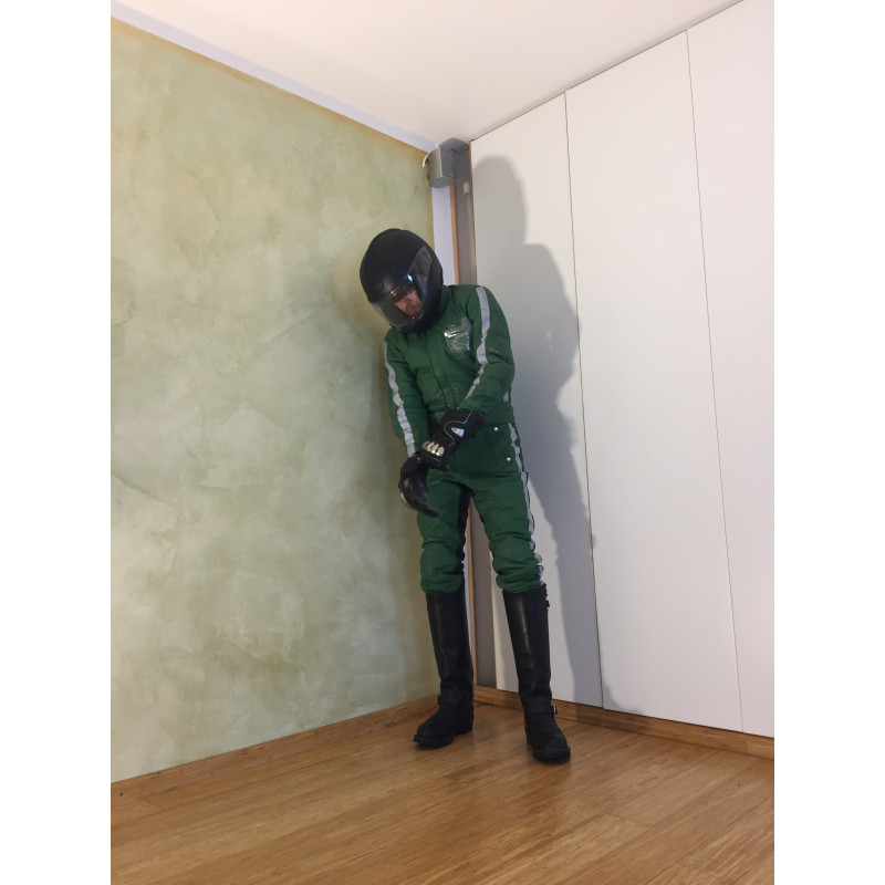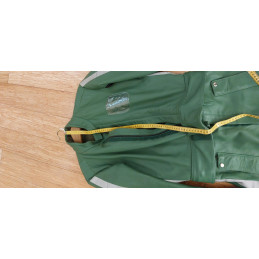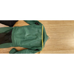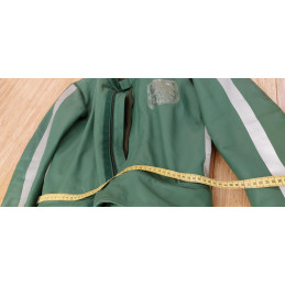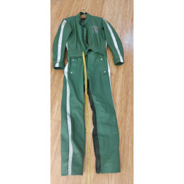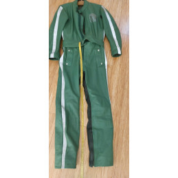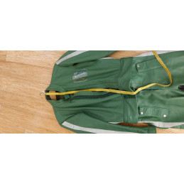 Diese originale, gebrauchte Lederkombi im auffälligen Grün ist ein echtes Sammlerstück und stammt aus dem Polizei-/Behördeneinsatz.