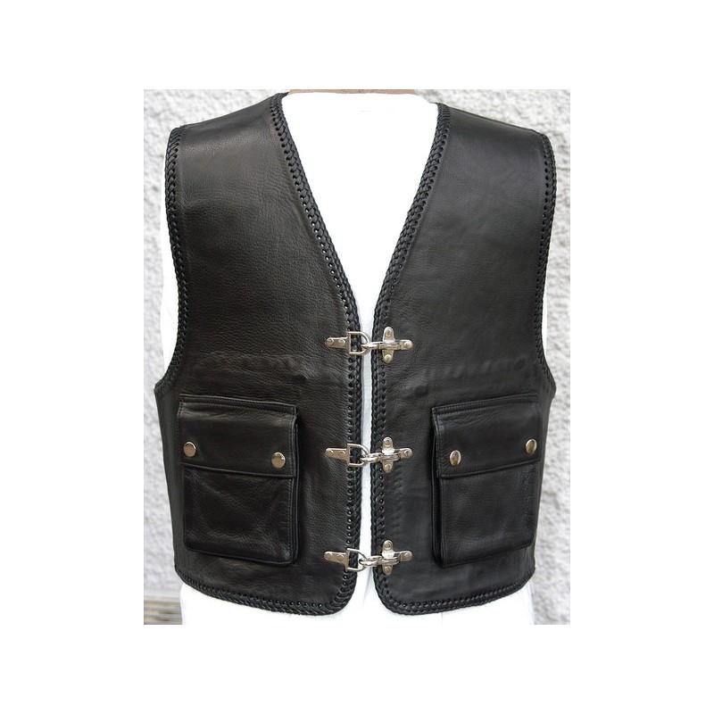 Weste KAI aus schwarzem Rindsleder glatt