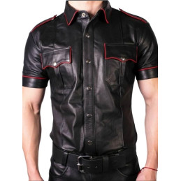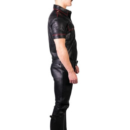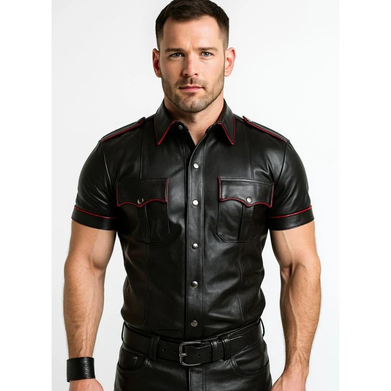 Die rote Lederpaspelierung an Ärmeln , Taschen und Schulterklappen sorgt für einen