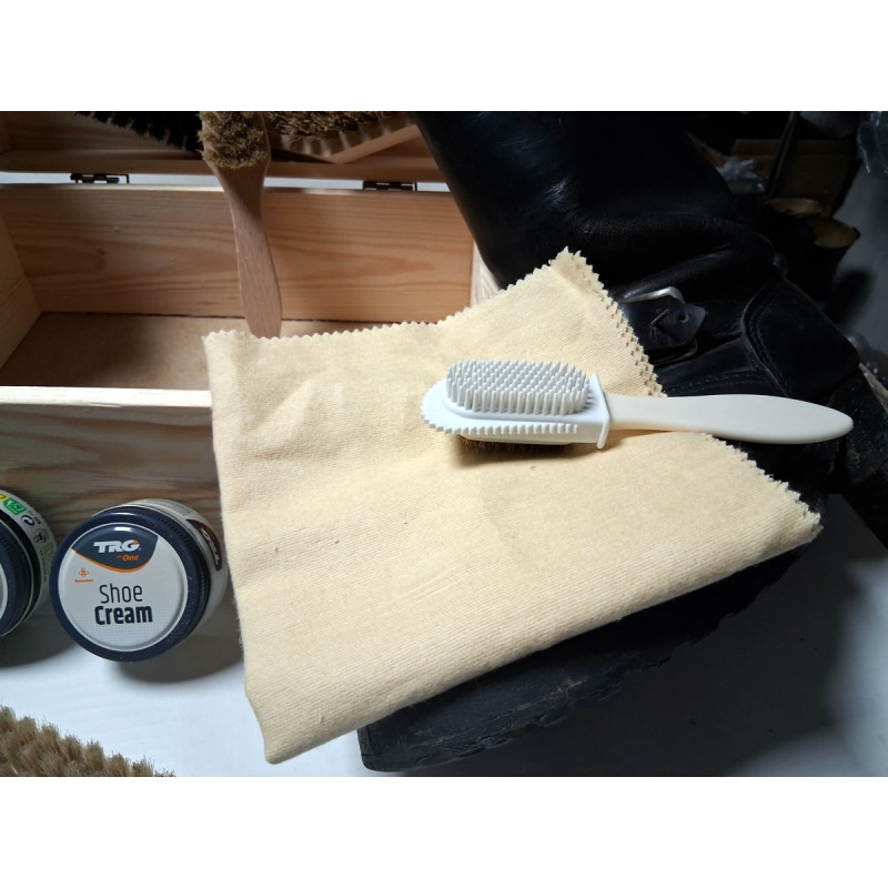 Dieses Pflegeset ist ideal für alle, die Stiefel mit Hingabe behandeln, die das Geräusch der Bürste lieben und die besondere Atmosphäre genießen, wenn Leder unter den eigenen Händen lebendig wird.