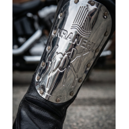 Die massiven Metall-Schienbeinschützer mit Nieten und Prägung geben den Stiefeln einen klaren Mad-Max-Style: