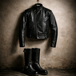 und vereint klassischen Biker-Look mit präziser Fetisch-Schnittarbeit.