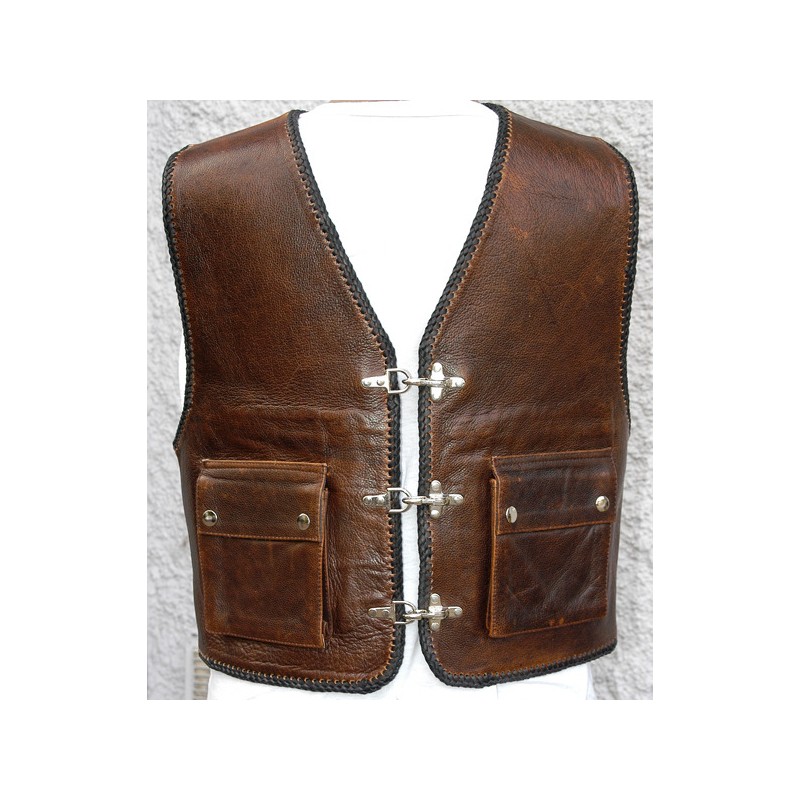 Rindslederweste mit Druckknöpfen und seitlicher Schnürung